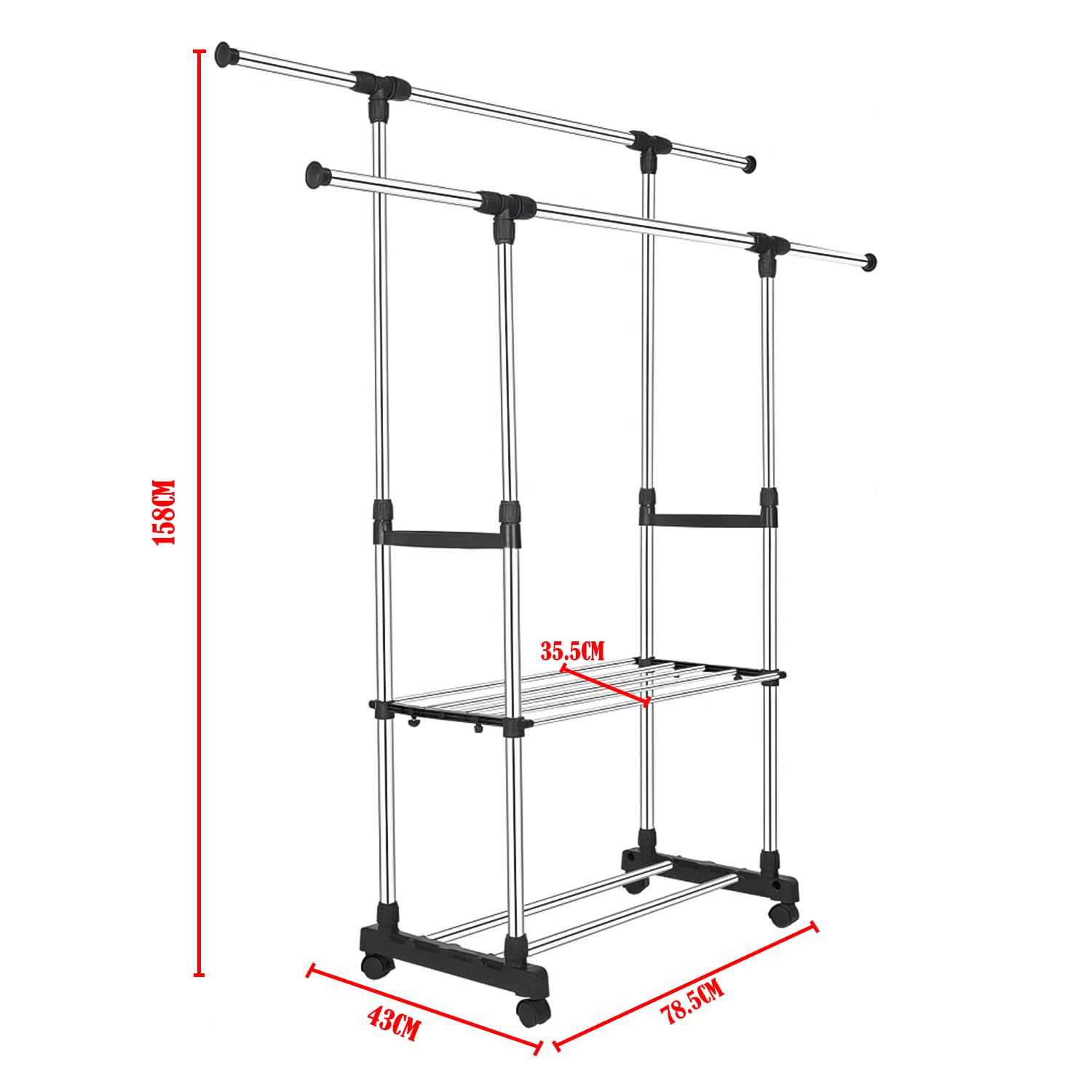 ✅Extensible y ajustable: Se adapta a cualquier espacio, ya sea en tu dormitorio, closet o incluso para mudanzas. ✅Gran capacidad: Con doble barra para colgar ropa, estantes para zapatos y espacio extra para accesorios. ✅Fácil de mover y armar: Diseño ligero con ruedas y montaje sencillo. ¡Organización sin complicaciones! ✅Resistente y duradero: Estructura de acero reforzado para máxima estabilidad y durabilidad.